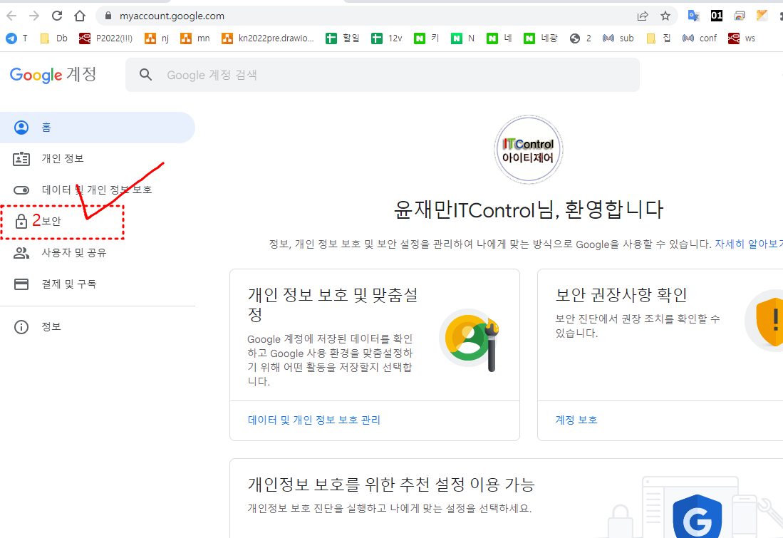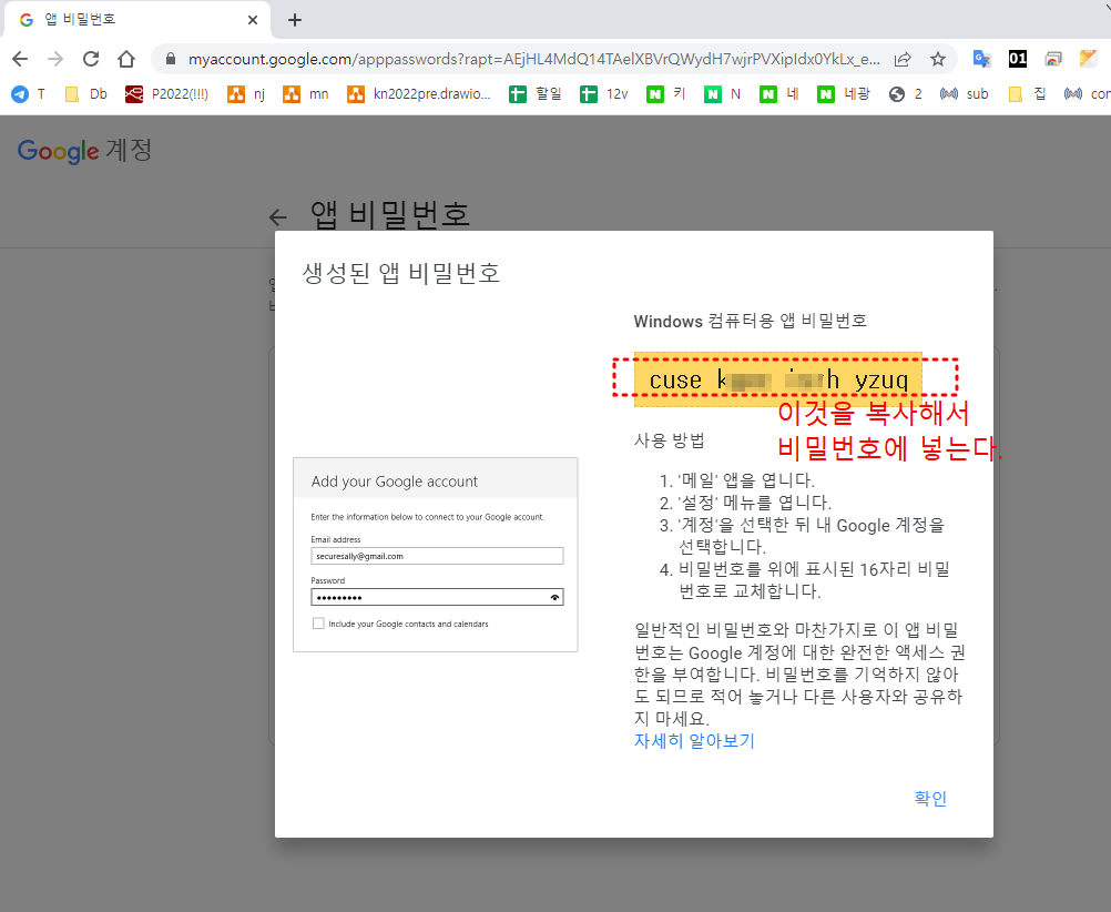 계정관리 > 보안 > 앱비밀번호 (생성) 하여 사용